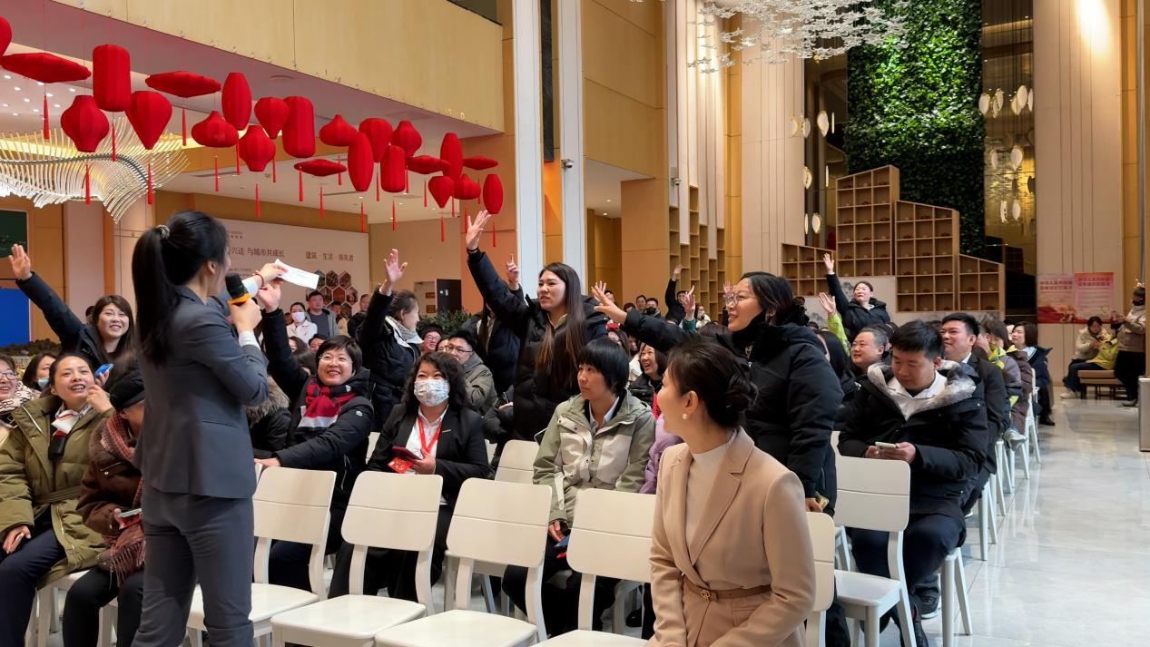 本次大會(huì)現(xiàn)場(chǎng)氛圍熱烈高漲,藍(lán)灣莊園精心準(zhǔn)備豐厚獎(jiǎng)品,為渠道伙伴送上誠(chéng)摯激勵(lì)。互動(dòng)有獎(jiǎng)問(wèn)答環(huán)節(jié)更是掀起全場(chǎng)高潮,銷售精英們踴躍搶答、積極參與,在交流中深入了解項(xiàng)目亮點(diǎn),現(xiàn)場(chǎng)掌聲與歡呼聲此起彼伏,盡顯攜手共贏的蓬勃朝氣。